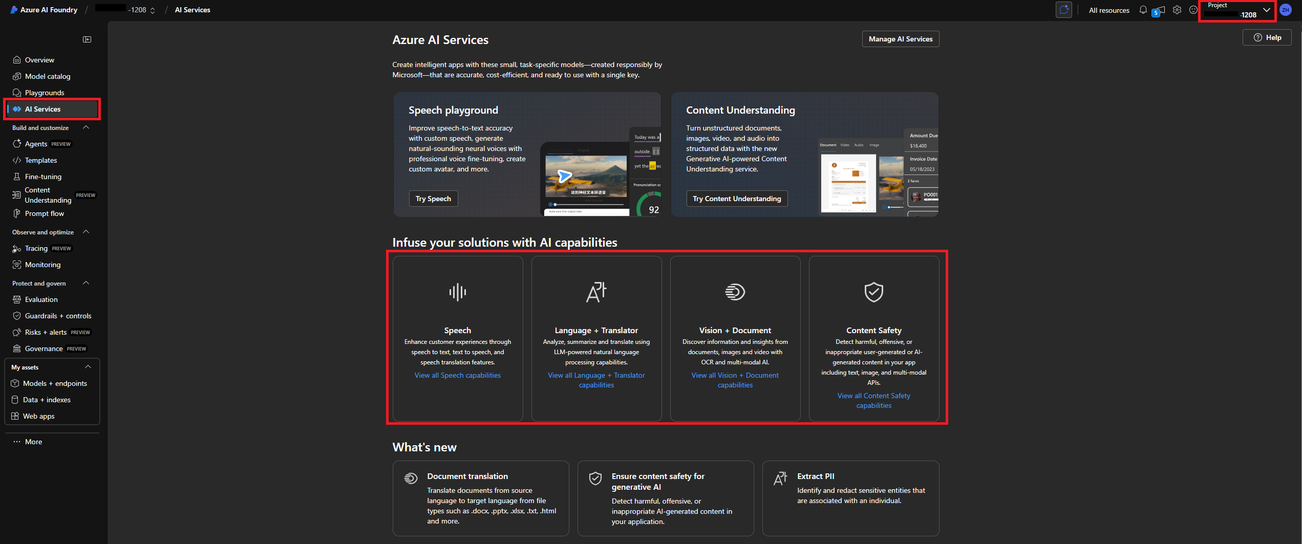 Step 1: Deploy an Azure AI Foundry resource and navigate to https://ai.azure.com. Make sure that your project is deployed in a region that supports AI services, such as East US.